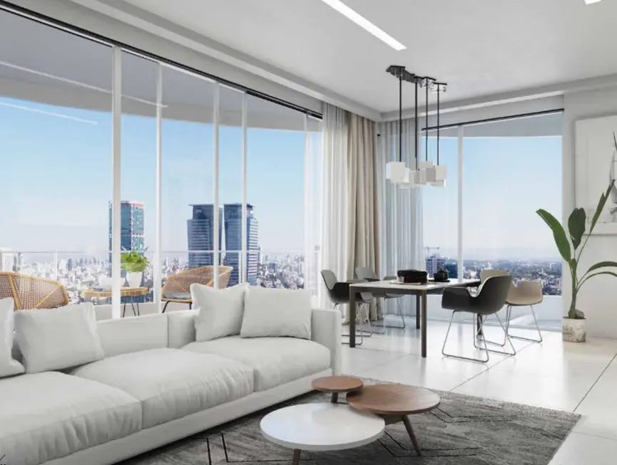 Every new apartment in Tel Aviv within this landmark project has been crafted with meticulous attention to detail. The architecture features four 48-story towers with an iconic “cloverleaf” design, ensuring that every residence enjoys unobstructed views of the sea or the surrounding cityscape.